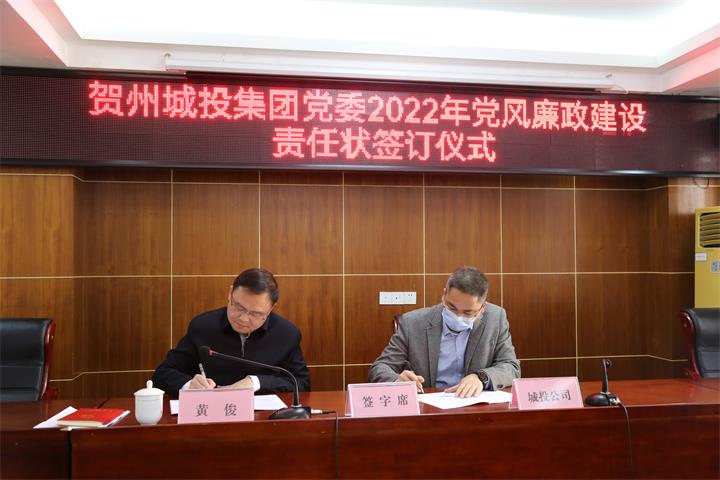 會議最后集團黨委書記、董事長黃俊代表集團黨委分別與集團各子公司黨支部現(xiàn)場簽訂了2022年度黨風(fēng)廉政建設(shè)責(zé)任書,會議并組織參會人員集中觀看警示教育片《沉重的懺悔深刻的警醒》。